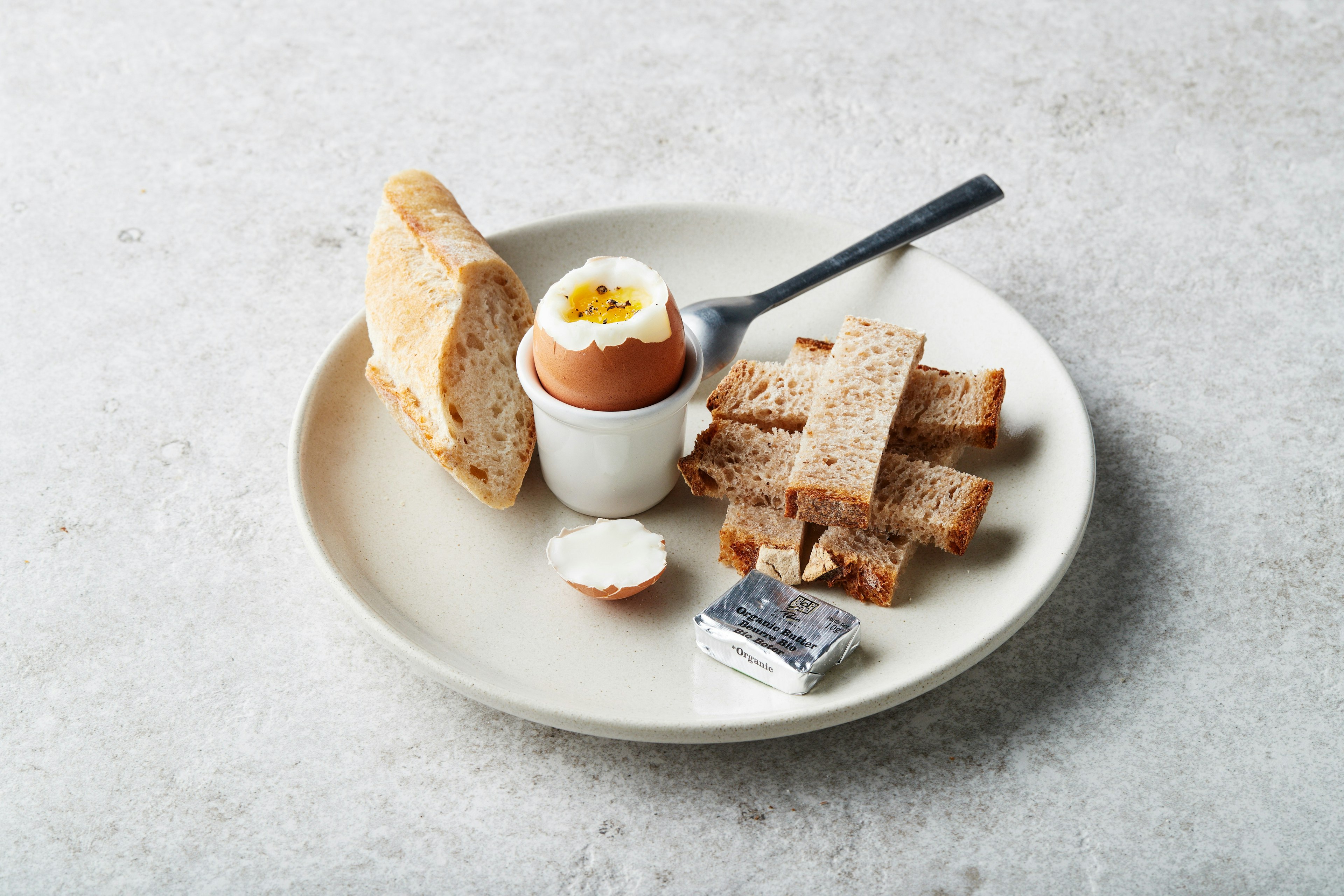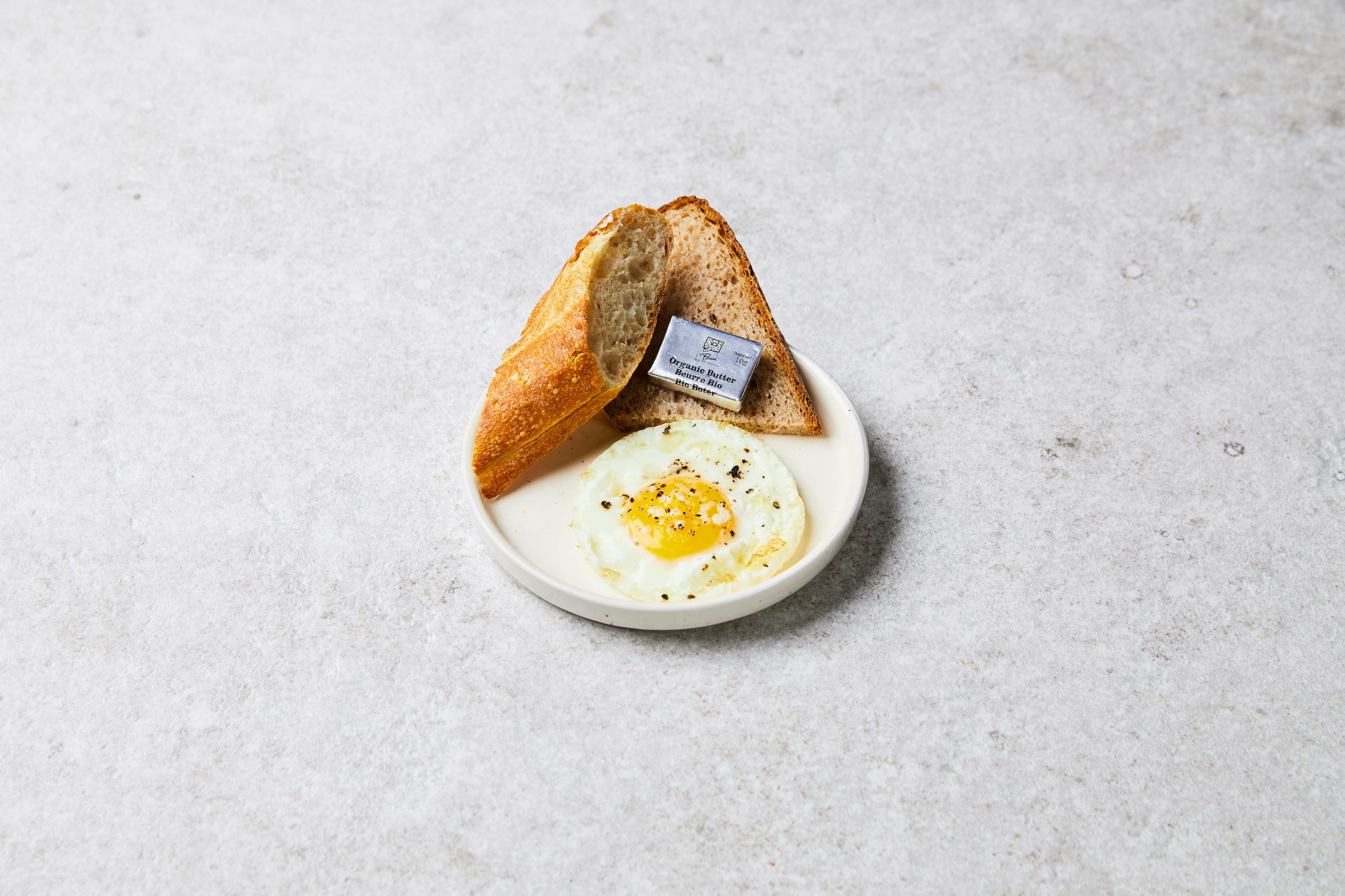 Een klassiek Belgisch ontbijt in zijn puurste vorm, kies tussen één of twee biologische eitjes en waan je in een paar seconden terug in je kindertijd.