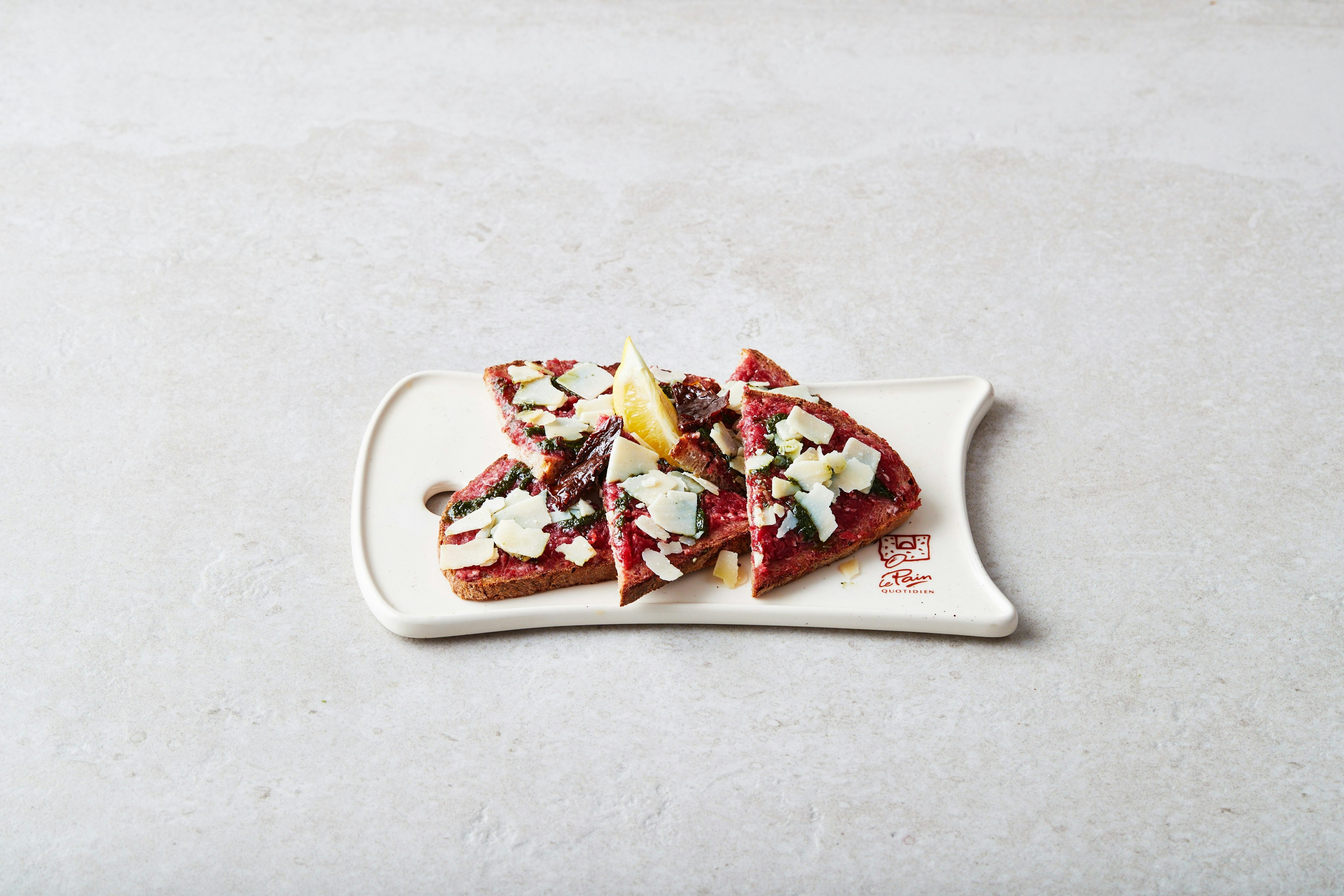 Klassieker sinds 1990! Geniet van een delicaat gekruide biologische tartaar van Belgisch rundvlees, verrijkt met stukjes Parmezaan, een vleugje geurige basilicumolie en biologische zongedroogde tomaten.
