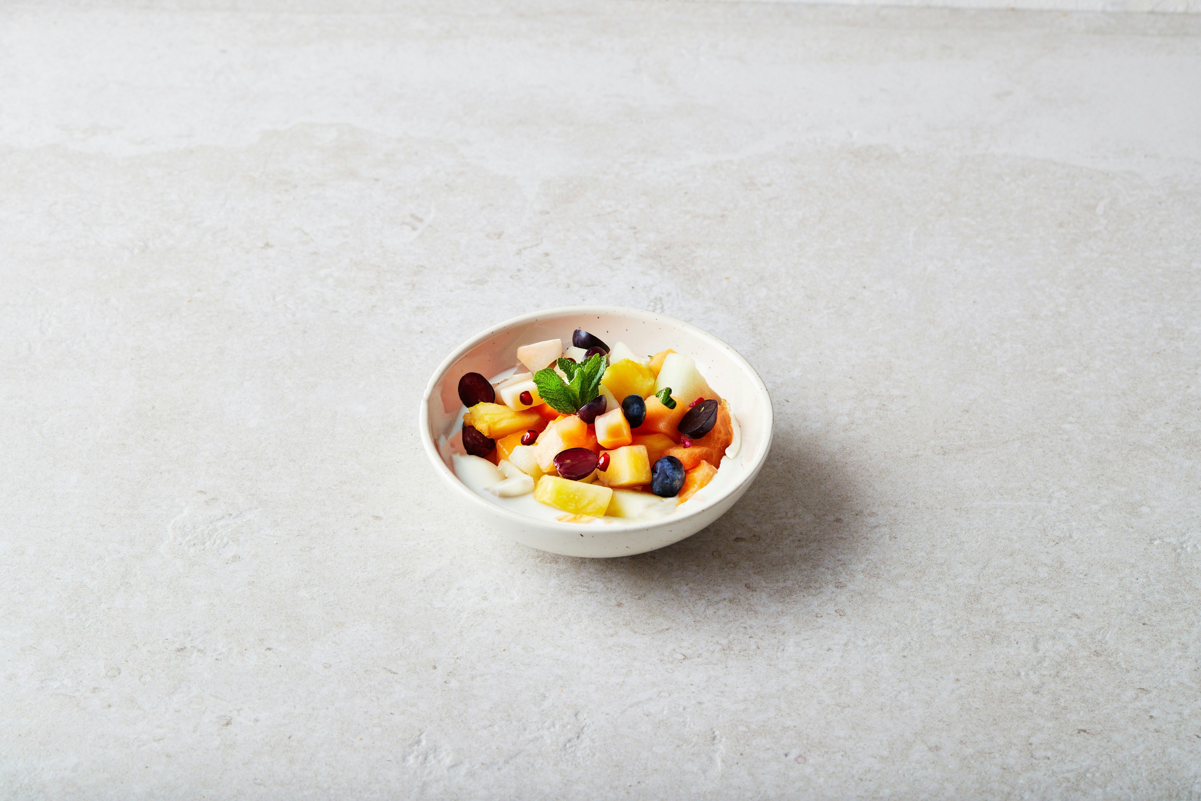 Een levendige mix van seizoensfruit, elke ochtend vers gesneden. Natuurlijk zoet en verfrissend, perfect voor een licht ontbijt of een heerlijk dessert.