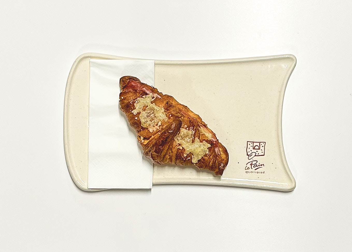 A buttery, flaky croissant, served warm and filled with savory ham and melted cheese – a simple yet satisfying classic.