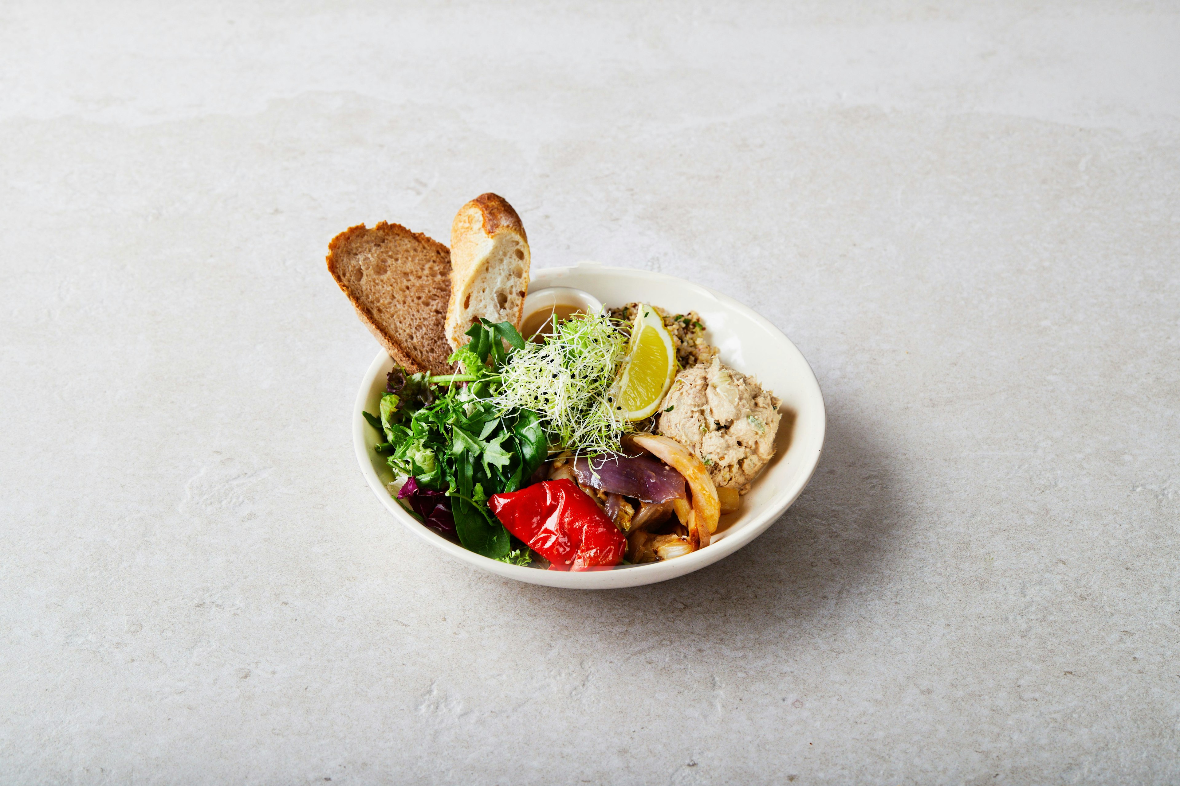 De perfecte combinatie voor tussen de middag: een comfortabele bowl veganistische soep, gecombineerd met een halve tartine en aangevuld met een frisse salade. Een uitgebalanceerde maaltijd om op elk moment van te genieten.