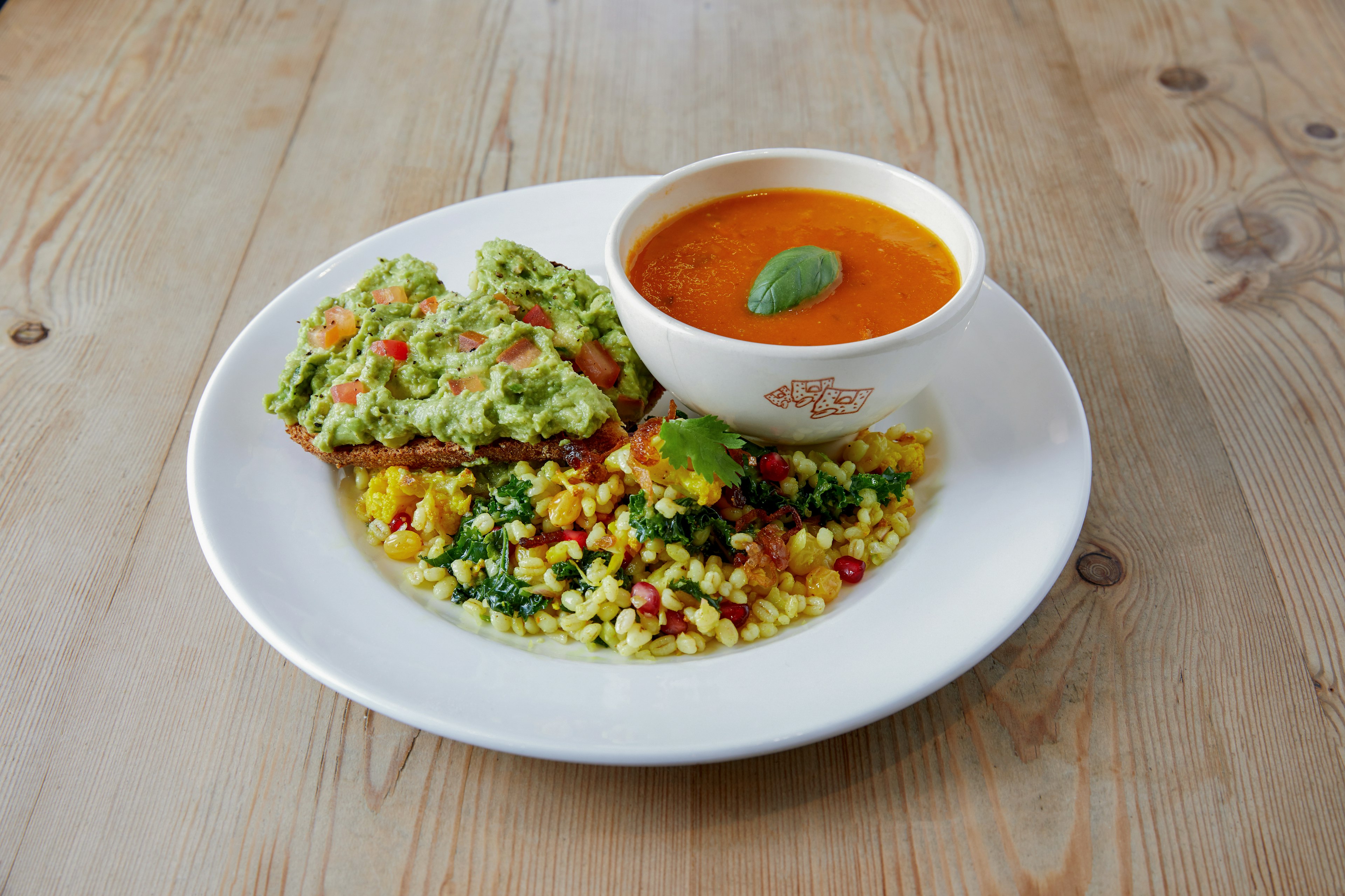 The perfect midday combo—a comforting bowl soup, paired with a half tartine of the day, and complemented by a fresh side salad. A balanced meal to enjoy any time.