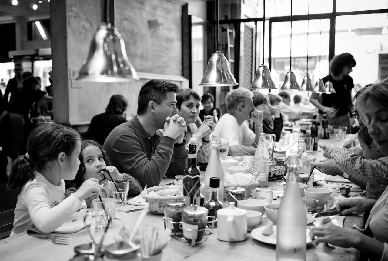 Our first communal table on Rue Dansaert in Brussels was made out of wood recovered from the floors of Belgian trains that had been taken out of service. Those simple planks became a tradition. Today, this same rough, reclaimed wood continues to bring rustic comfort to our restaurants, and the communal tables have become our centerpieces. We believe that the community is what nurtures, inspires, and feeds the soul. Our tables are long enough for all to fit and narrow enough for all to talk; they are where friends reconnect, and new friendships, relationships, and career paths are forged over the shared appreciation of delicious food and good company. For every new table, the old wood is planed and sanded until it feels completely smooth, and the surface only gets better after years of guests’ hands touching it and hosts cleaning it.