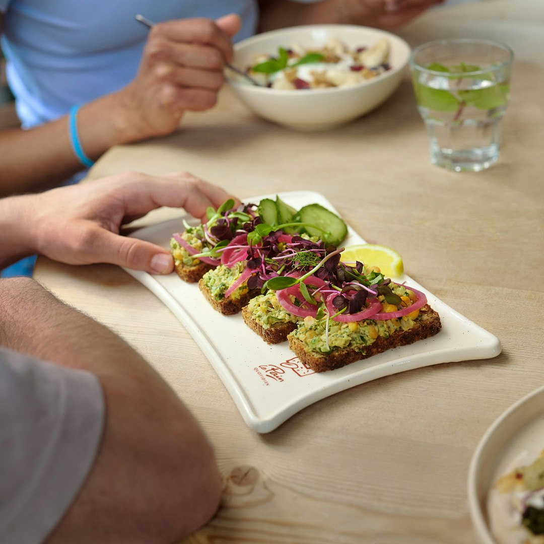 De aantrekkingskracht van het merk is gebaseerd op een unieke combinatie van elementen: een gastvrije en authentieke sfeer, ons ambachtelijk zuurdesembrood van 2 kg - de basis van de iconische tartines, en een grote gemeenschappelijke tafel.