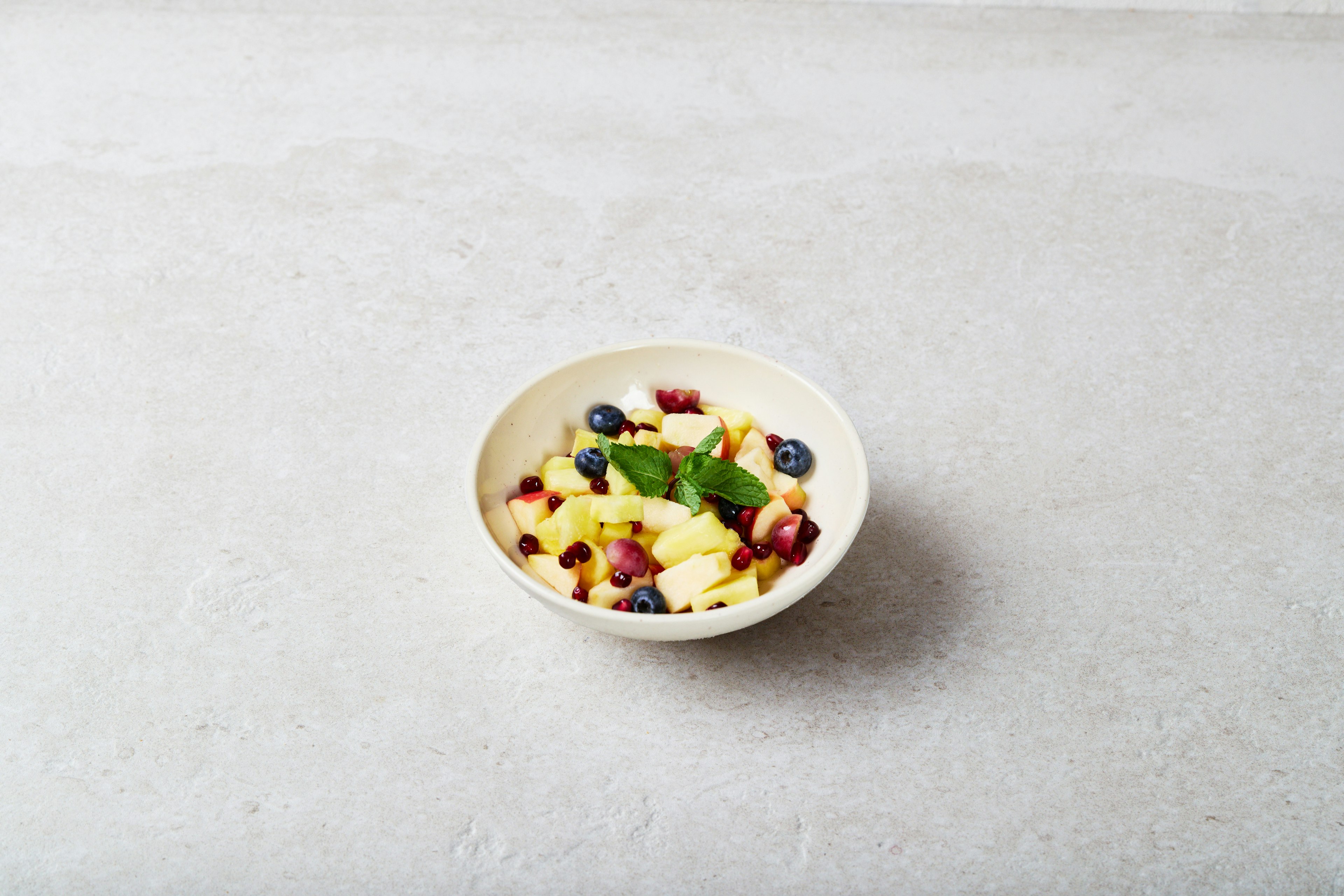 Een levendige mix van seizoensfruit, elke ochtend vers gesneden. Natuurlijk zoet en verfrissend, perfect voor een licht ontbijt of een heerlijk dessert.