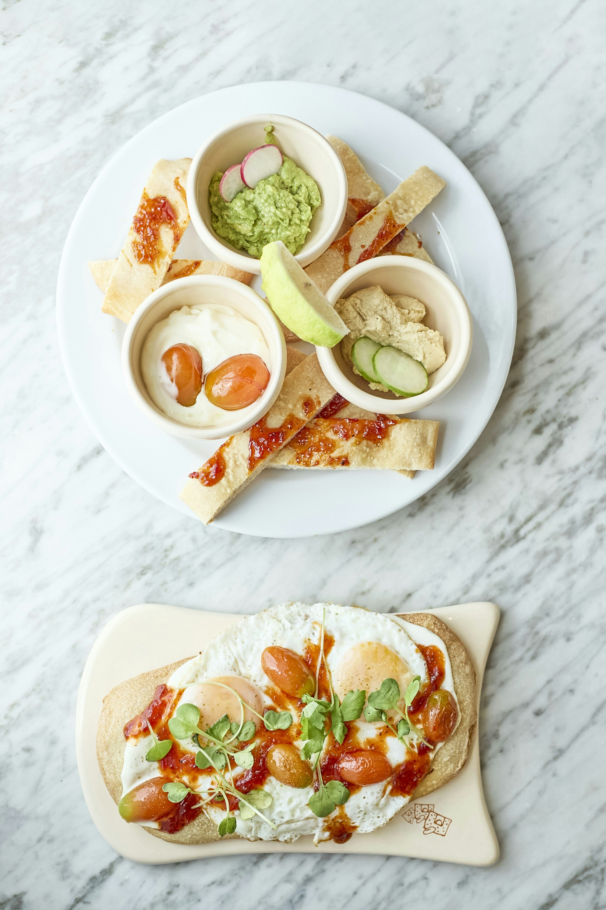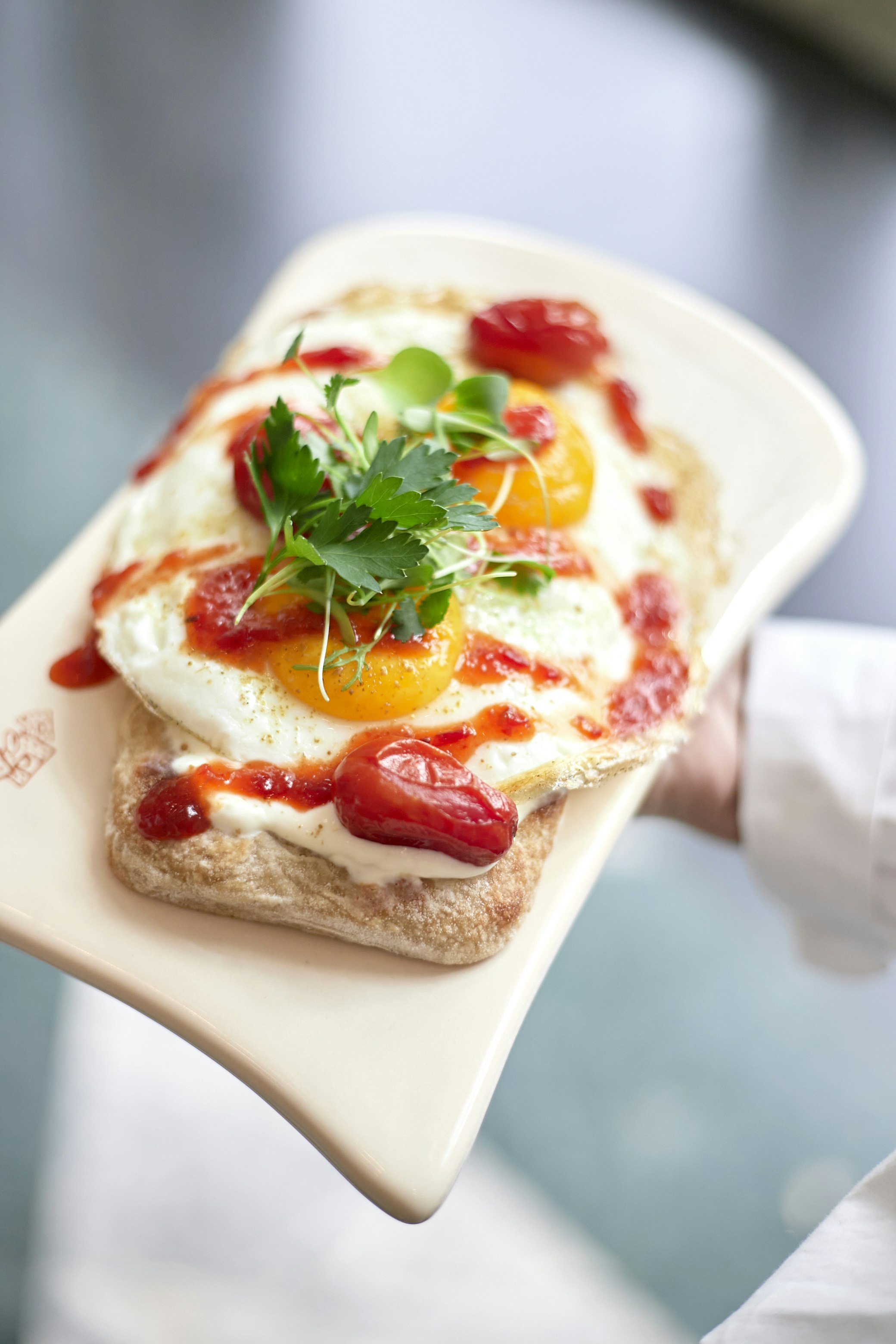 With labneh, cherry tomatoes, microgreens and organic sweet chili.