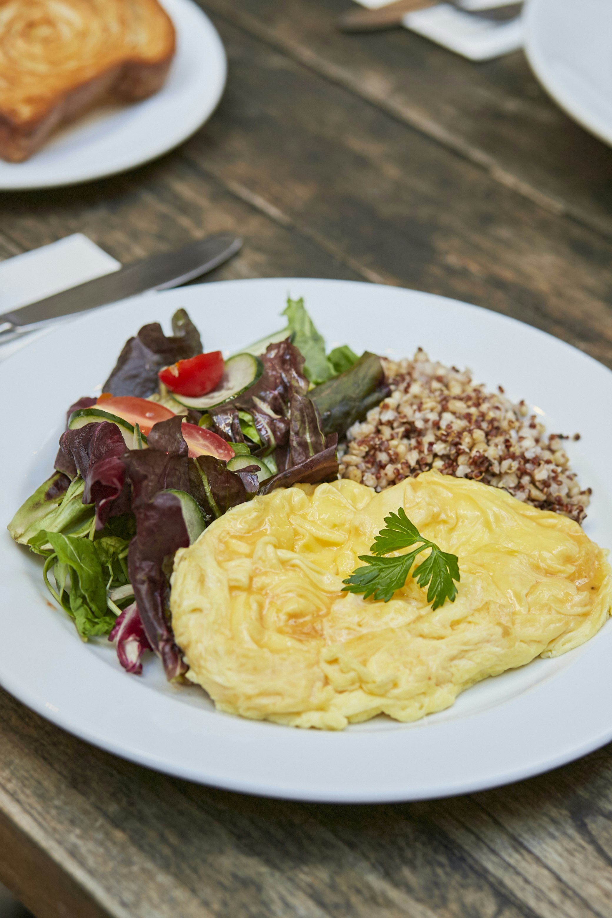 A selection of our artisan breads with organic jam or honey, cream cheese and dulce de leche. Choice of: croissant, pain au chocolat or cinnamon roll • croissant or ham and cheese brioche • scone or muffin • slice of cake, pudding or brownie • 2 coffee drinks • 2 cold homemade drinks.